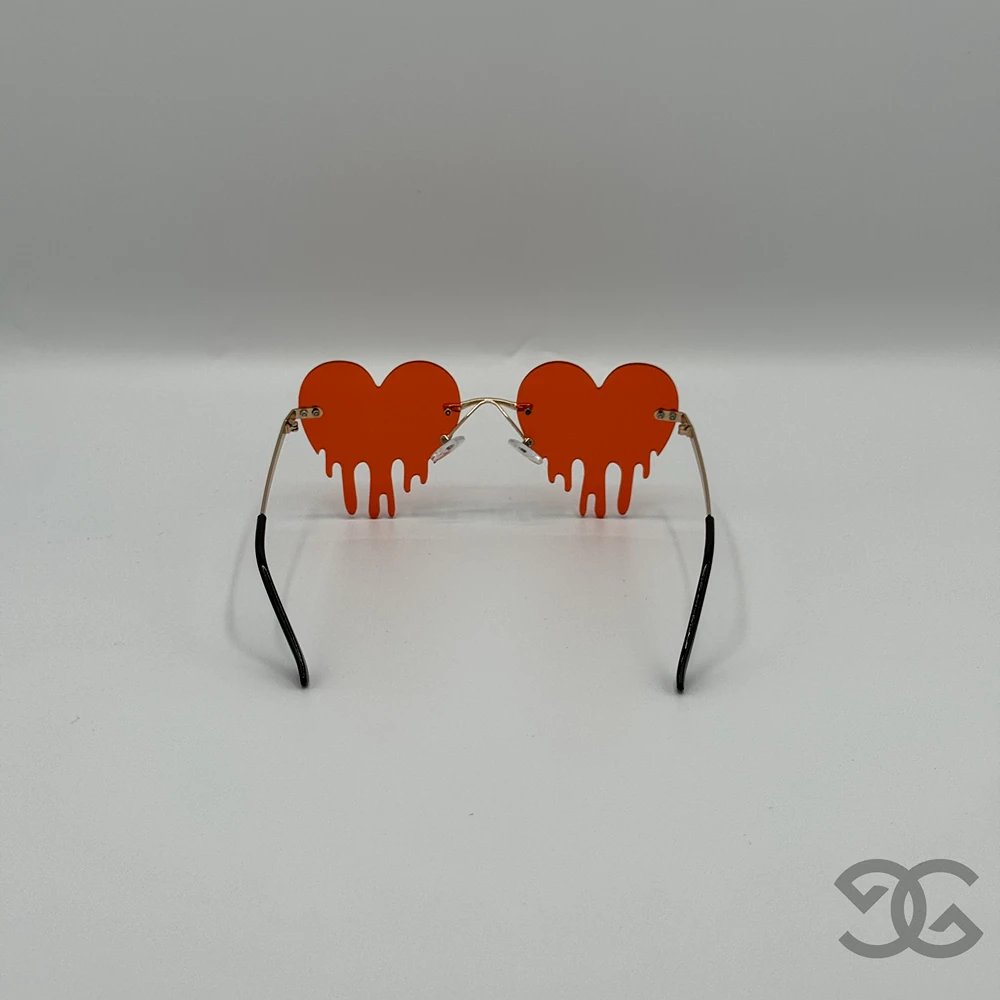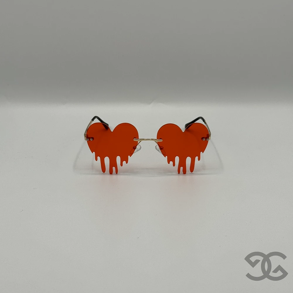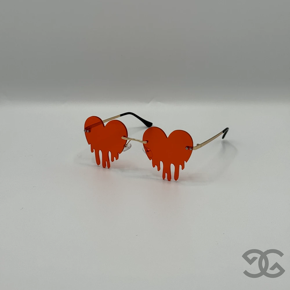 Bold Heart Drip Design – These fiery red heart-shaped shades feature a melting drip style that makes you instantly unforgettable.