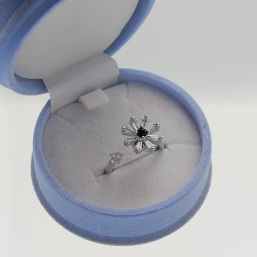 Elegant silver flower ring with a smooth spinning centerpiece for style and stress relief. Shimmering finish and crystal accents make it a perfect gift for birthdays, engagements, or special occasions.