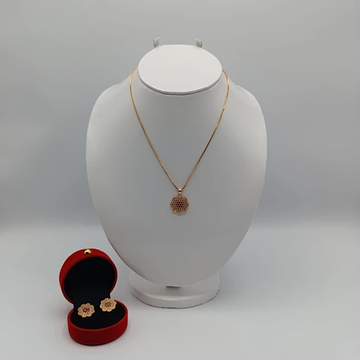✨ Intricate Floral/Geometric Detailing – The medallion on both the pendant and earrings boasts a beautifully crafted openwork pattern, suggesting a stylized floral or geometric motif that adds depth and sophistication.
