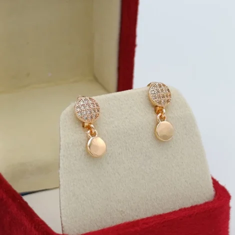 🌟 Elegant Petal Design – This exquisite golden pendant features a beautifully crafted floral or petal-inspired design, adorned with sparkling clear stones and vibrant ruby-red accents, creating a captivating visual.