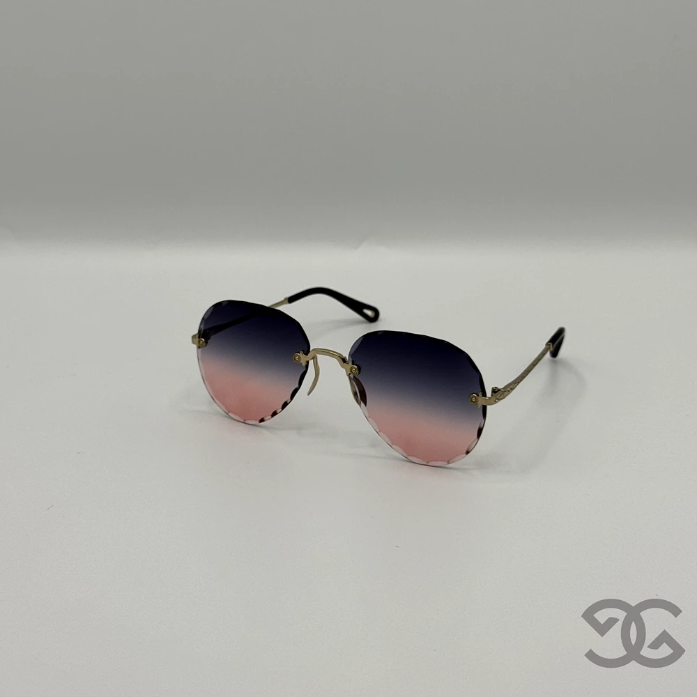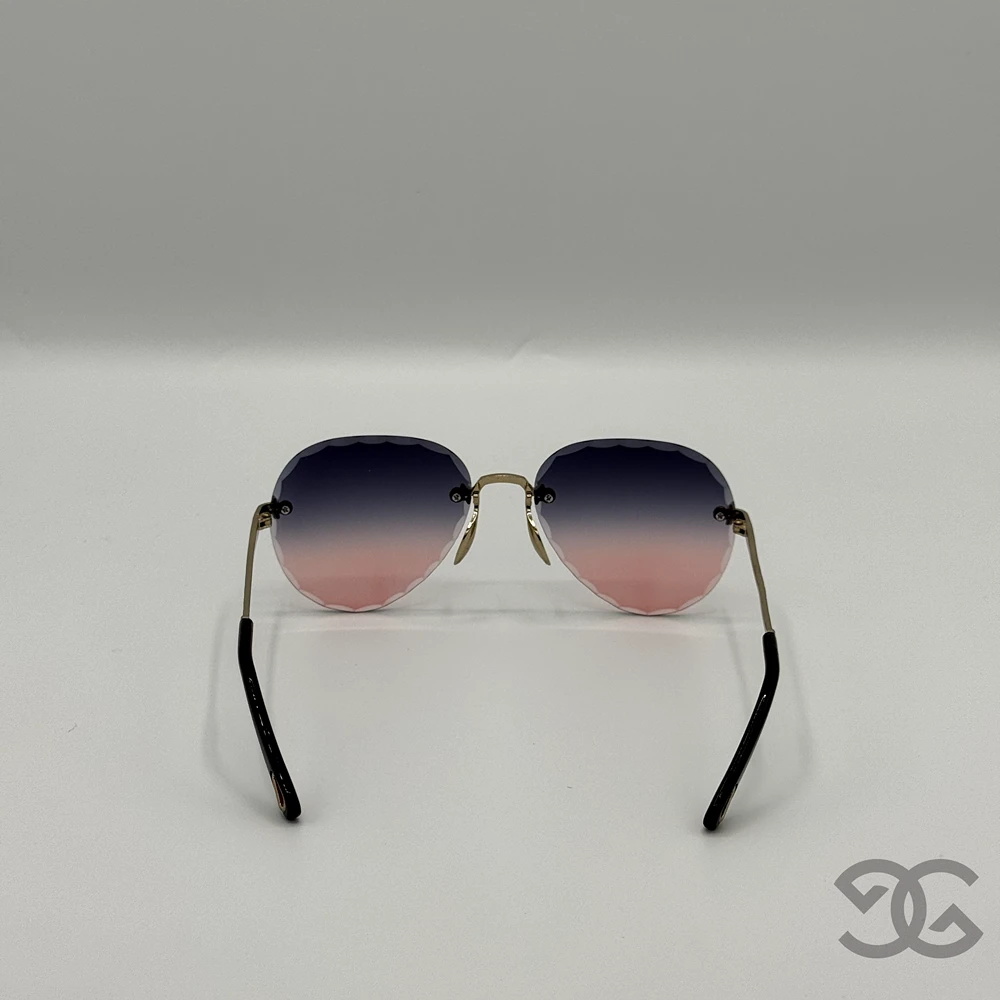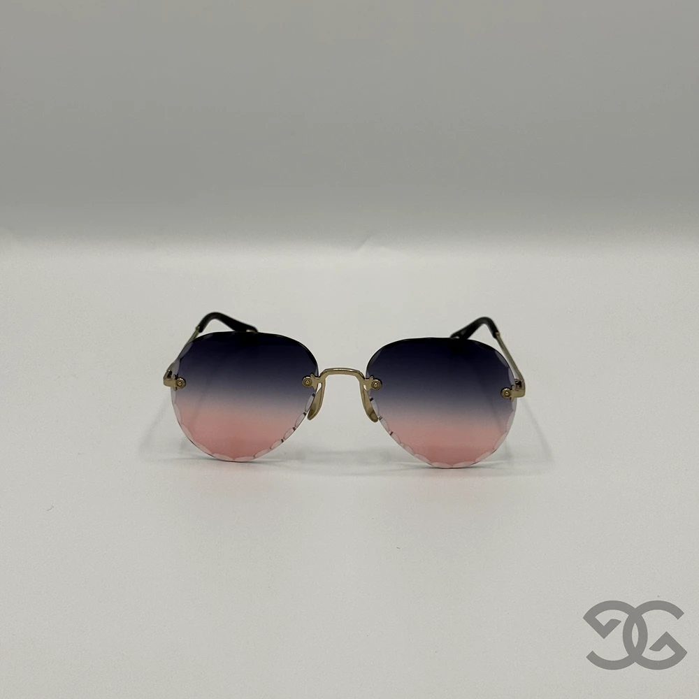 A showstopping fusion of color and texture with a beautiful blue-to-pink sunset gradient and a unique jagged rimless design on a gold-toned frame. The Party Star, The Show Stopper, The Elegance Icon, The Glamour Touch, The Beauty Booster, The Attention Catcher.